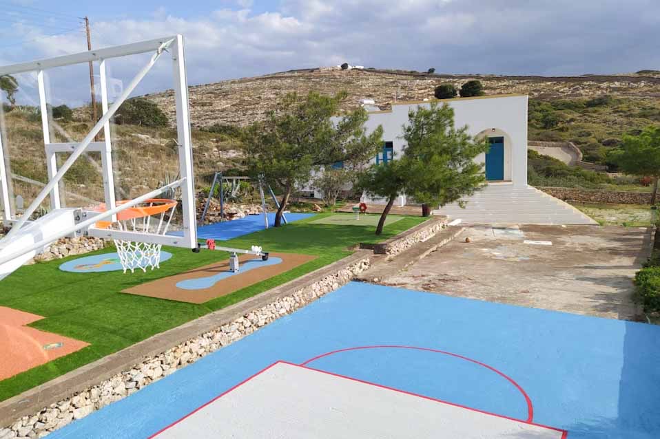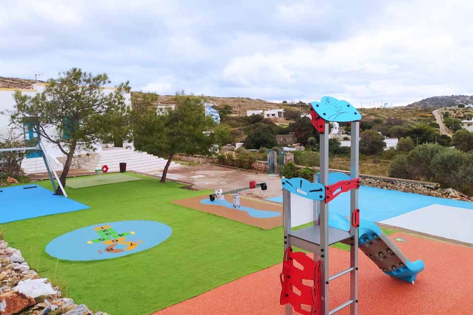 Ο καινούργιος και ιδιαίτερα φιλόξενος αυτός χώρος αποτελεί ένα πολύτιμο «πεδίο δράσης» για παιχνίδι, μάθηση και αθλητικές δραστηριότητες για τους μικρούς επισκέπτες του νησιού, και κυρίως για τον μοναδικό μαθητή του σχολείου που κατοικεί στο νησί.