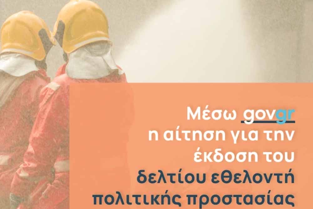 Μέσω του gov.gr, μπορούν από σήμερα οι εθελοντές πολιτικής προστασίας να υποβάλλουν ηλεκτρονικά την αίτησή τους για την έκδοση του δελτίου εθελοντή πολιτικής προστασίας, στο πλαίσιο της συνεργασίας των Υπουργείων Κλιματικής Κρίσης και Πολιτικής Προστασίας και Ψηφιακής Διακυβέρνησης. Με αυτόν τον τρόπο, οι εθελοντές διευκολύνονται σημαντικά, ενώ αναδεικνύεται η σημασία του εθελοντισμού πολιτικής προστασίας για το κράτος και την κοινωνία. Επίσης, μειώνεται η γραφειοκρατία και διασφαλίζεται η αξιοπιστία και η αυθεντικότητα του εγγράφου.