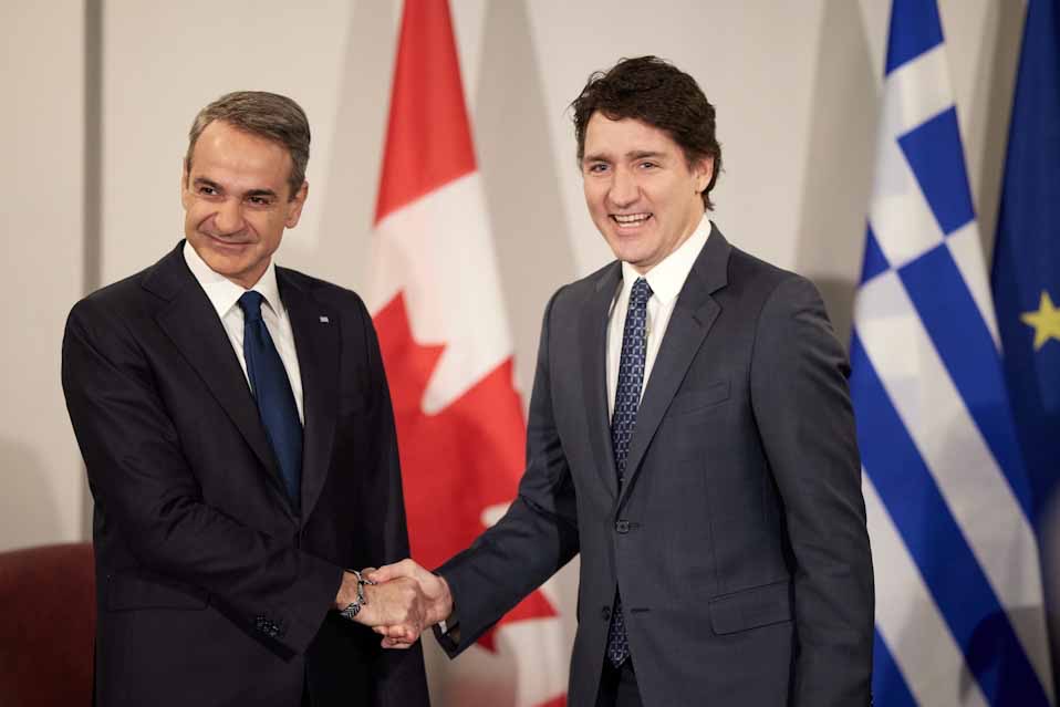 Justin Trudeau: Είναι μεγάλη χαρά για εμένα να καλωσορίζω τον φίλο μου, Κυριάκο, στον Καναδά. Έχουν παρέλθει 41 χρόνια από τότε που Έλληνας Πρωθυπουργός ήρθε στον Καναδά και οφείλεται στη φιλία του πατέρα μου με τον τότε Πρωθυπουργό Παπανδρέου που αυτό συνέβη την πρώτη φορά. Συνεπώς, αυτή τη φορά χαίρομαι που η δική μας φιλία σας έφερε εδώ σήμερα.