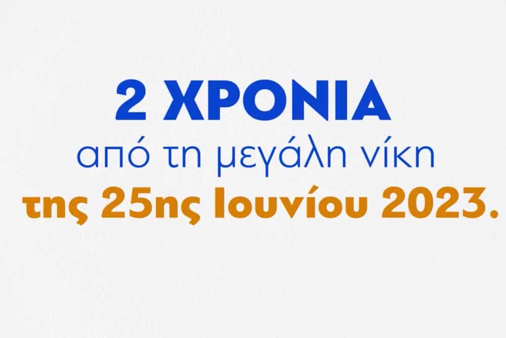 «Δύο χρόνια από τη μεγάλη νίκη της 25ης Ιουνίου 2023, 10 εμβληματικές μεταρρυθμίσεις της 2ης θητείας μας» αναφέρεται σε βίντεο της Νέας Δημοκρατίας που αναρτήθηκε στα κοινωνικά δίκτυα για τη συμπλήρωση δύο χρόνων της 2ης κυβερνητικής θητείας.