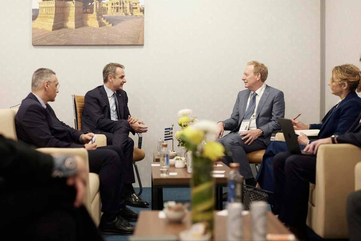 Φωτογραφία: Ο Πρωθυπουργός Κυριάκος Μητσοτάκης με τον τον Αντιπρόεδρο της Microsoft, Brad Smith.