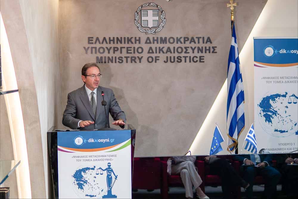 Ο Υπουργός Δικαιοσύνης, κ. Γιώργος Φλωρίδης σε βιντεοσκοπημένο μήνυμά του τόνισε: «Εξελίσσεται ένα πάρα πολύ σημαντικό έργο στον τομέα της δικαιοσύνης που αφορά στον εκσυγχρονισμό της και στην ψηφιακή της μετάβαση. Ο σκοπός αυτού του πολύ μεγάλου έργου δεν είναι μόνο η επιτάχυνση αλλά και η αναβάθμιση της ποιότητας των εκδιδομένων αποφάσεων. Περιλαμβάνει σημαντικές παρεμβάσεις,όπως την ψηφιοποίηση 300 εκατ. σελίδων δικαστικών αποφάσεων και αρχείων, την οργάνωση τηλεδικών, τα τηλεπινάκια και όλες εκείνες τις λειτουργίες που επιτρέπουν στη δικαιοσύνη να κινείται γρήγορα. Κρίσιμη εφαρμογή είναι ο περίφημος ηλεκτρονικός φάκελος, όπου όλες οι διαδικασίες, όλα τα δικόγραφα θα συγκεντρώνονται σε ένα ηλεκτρονικό σημείο. Αυτό, με απλά λόγια, σημαίνει τεράστια εξοικονόμηση χρόνου και ανθρώπινης δραστηριότητας, η οποία μπορεί να ασκείται από ένα και μόνο γραφείο».