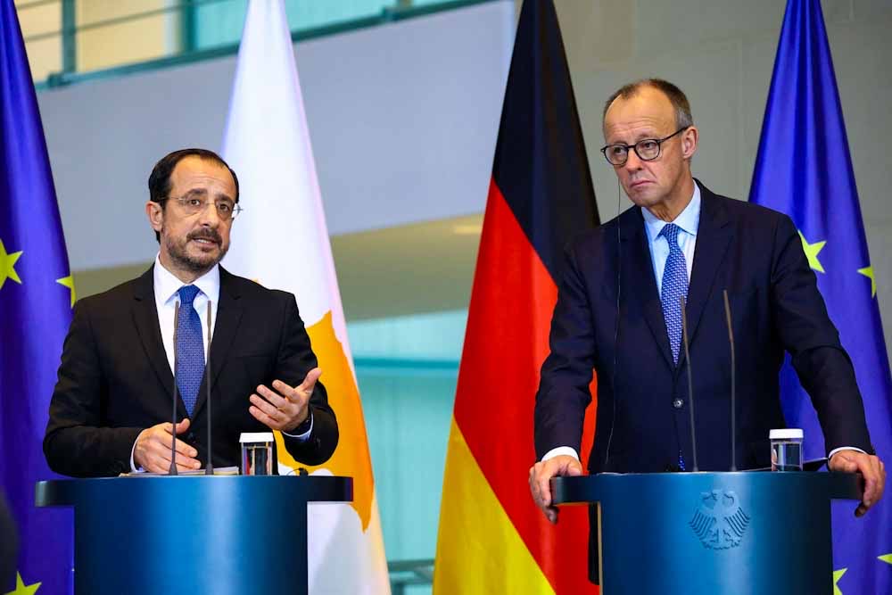 Την βούληση του Βερολίνου για περαιτέρω προσέγγιση της Ευρωπαϊκής Ένωσης με την Τουρκία, αλλά και την υποχρέωση τήρησης των κριτηρίων της Κοπεγχάγης, τόνισε ο καγκελάριος Φρίντριχ Μερτς μετά τη συνάντηση που είχε με τον πρόεδρο της Κυπριακής Δημοκρατίας Νίκο Χριστοδουλίδη και εξέφρασε τη βούληση να συμμετάσχει ενεργά σε μια προσπάθεια επανέναρξης των συνομιλιών για το Κυπριακό.
