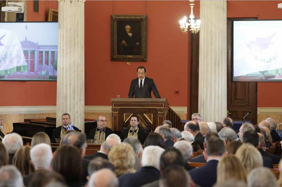 «Η δημιουργία του Παραρτήματος του Εθνικού και Καποδιστριακού Πανεπιστημίου Αθηνών στην Κύπρο αποτελεί τιμητικό ορόσημο στην προσπάθεια που καταβάλλουμε για την περαιτέρω διεθνοποίηση και αναβάθμιση της Ανώτερης Εκπαίδευσης στην Κύπρο», ανέφερε ο Πρόεδρος της Δημοκρατίας κ. Νίκος Χριστοδουλίδης στην εκδήλωση που πραγματοποιήθηκε σήμερα στη Μεγάλη Αίθουσα του Εθνικού και Καποδιστριακού Πανεπιστημίου Αθηνών για την ίδρυση και λειτουργία του Εθνικού και Καποδιστριακού Πανεπιστημίου Αθηνών – Παράρτημα Κύπρου.