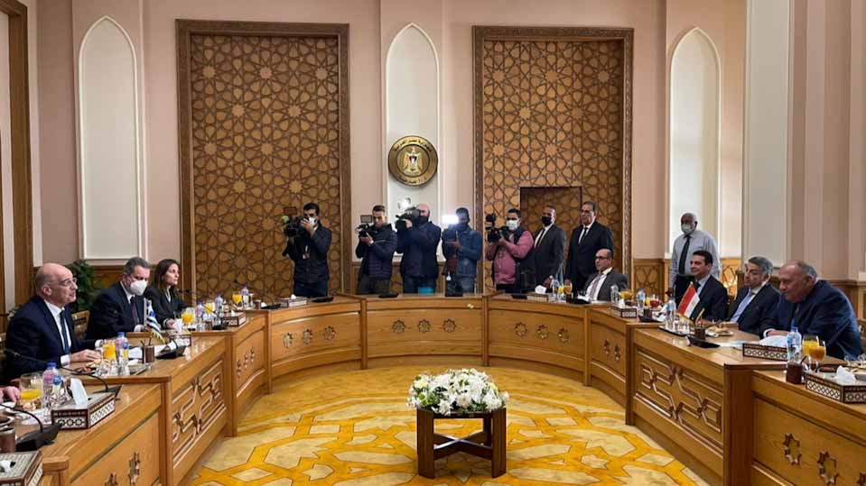 Εν συνεχεία, ο υπουργός Εξωτερικών της Αιγύπτου ενημέρωσε τον Νίκο Δένδια για τις συνομιλίες που είχε στη συνάντηση της ερήμου Νεγκέβ, όπου παρίστατο και ο Αμερικανός υπουργός Εξωτερικών Άντονι Μπλίνκεν. Υπενθυμίζεται πως στη συνάντηση αυτή έλαβαν μέρος οι υπουργοί Εξωτερικών του Ισραήλ, των Ηνωμένων Αραβικών Εμιράτων, του Μαρόκου, του Μπαχρέιν και της Αιγύπτου.