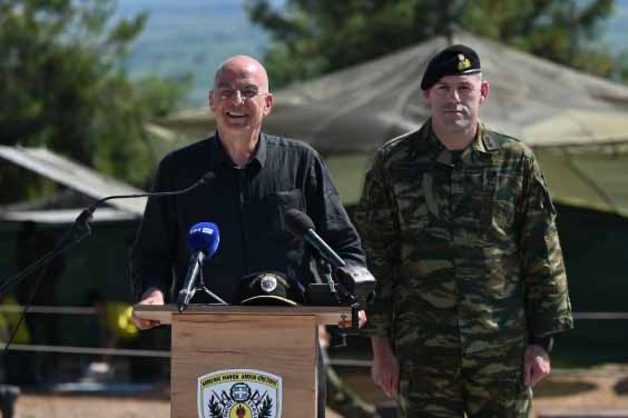 Ο Υπουργός Εθνικής Άμυνας, Νίκος Δένδιας, επισκέφθηκε σήμερα, Δευτέρα 7 Ιουλίου 2025, στο Λιτόχωρο Πιερίας, το Στρατόπεδο «Αντιστράτηγου Τζανιδάκη Ιωάννη – Αντισυνταγματάρχη (ΠΖ) Σβορώνου Δημητρίου», συνοδευόμενος από τον Αρχηγό ΓΕΣ Αντιστράτηγο Γεώργιο Κωστίδη. Ο κ. Δένδιας, μετέβη στο πεδίο ασκήσεων και στον στίβο μάχης του στρατοπέδου, όπου πραγματοποιείται το 1ο κατασκηνωτικό πρόγραμμα για μαθητές Λυκείου (“Summer Campus 2025”), από τη Στρατιωτική Σχολή Ευελπίδων (ΣΣΕ), στον ίδιο χώρο που διεξάγεται η ετήσια θερινή της εκπαίδευση.