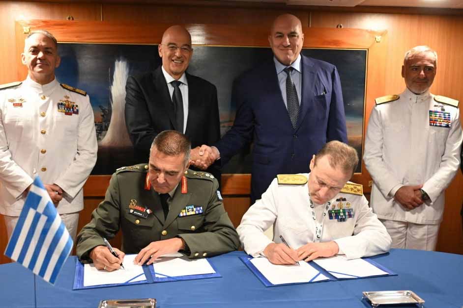 Παρουσία των δύο Υπουργών, υπογράφηκε από τον Γενικό Διευθυντή Αμυντικών Εξοπλισμών και Επενδύσεων (ΓΔΑΕΕ) Υποστράτηγο Ιωάννη Μπούρα και τον Ιταλό ομόλογό του Διευθυντή Εθνικών Εξοπλισμών της Ιταλίας Αντιναύαρχο Ottaviani Giancinto, Μνημόνιο Συνεργασίας για τη Ναυτική Συνεργασία Ελλάδας – Ιταλίας και Δήλωση Προθέσεων για την απόκτηση 2+2 ιταλικών φρεγατών τύπου FREMM, κλάσης Bergamini.