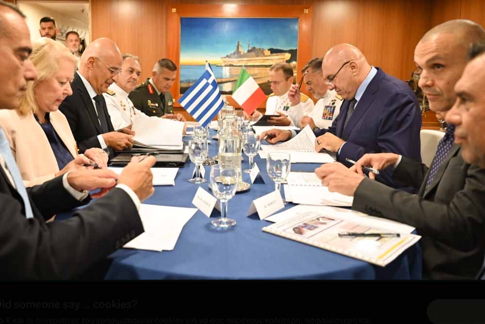 Ο κ. Δένδιας, συνοδευόμενος από τον Αρχηγό ΓΕΝ Αντιναύαρχο Δημήτριο-Ελευθέριο Κατάρα ΠΝ, συναντήθηκε με τον Υπουργό Άμυνας της Ιταλίας Γκουΐντο Κροσέτο (Guido Crosetto) στη Φρεγάτα του Πολεμικού Ναυτικού της Ιταλίας F 598 ITS.
