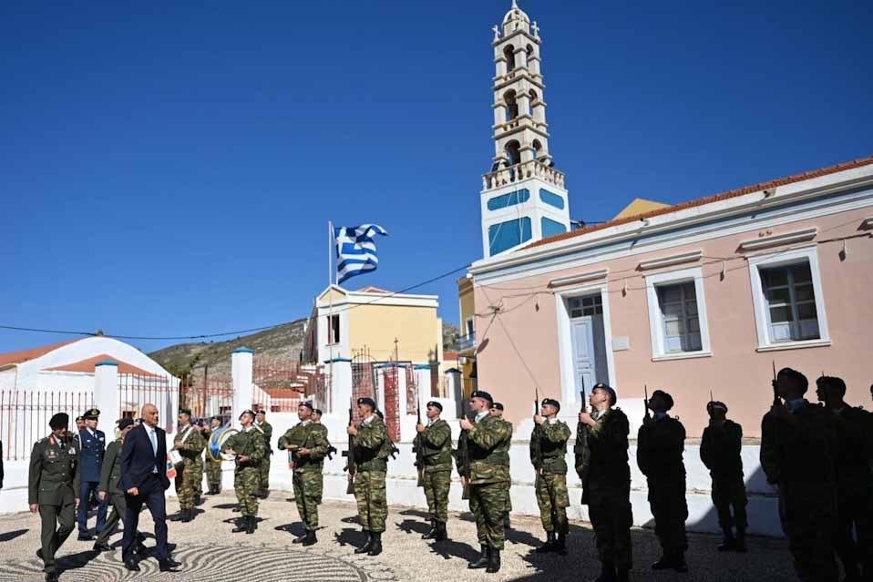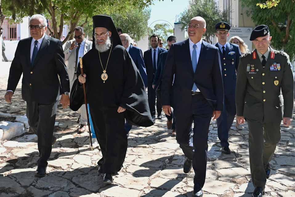 Το πρωί ο κ. Δένδιας παρακολούθησε την πανηγυρική δοξολογία στο ναό Αγίου Κωνσταντίνου και Ελένης, στην οποία χοροστάτησε ο Σεβασμιώτατος Μητροπολίτης Σύμης, Τήλου, Χάλκης & Καστελορίζου Χρυσόστομος.
