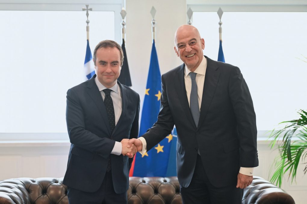 Ο Υπουργός Εθνικής Άμυνας, Νίκος Δένδιας, συναντήθηκε σήμερα, Μεγάλη Δευτέρα 14 Απριλίου 2025, με τον Υπουργό Ενόπλων Δυνάμεων της Γαλλικής Δημοκρατίας, Sébastien Lecornu, ο οποίος πραγματοποίησε επίσημη επίσκεψη στην Ελλάδα.