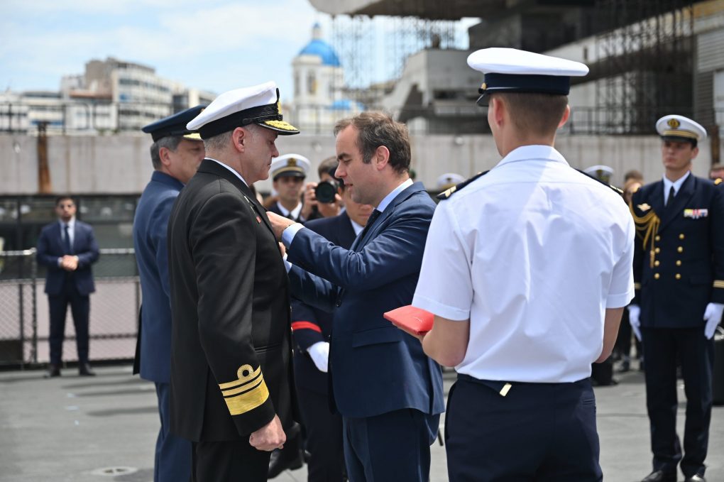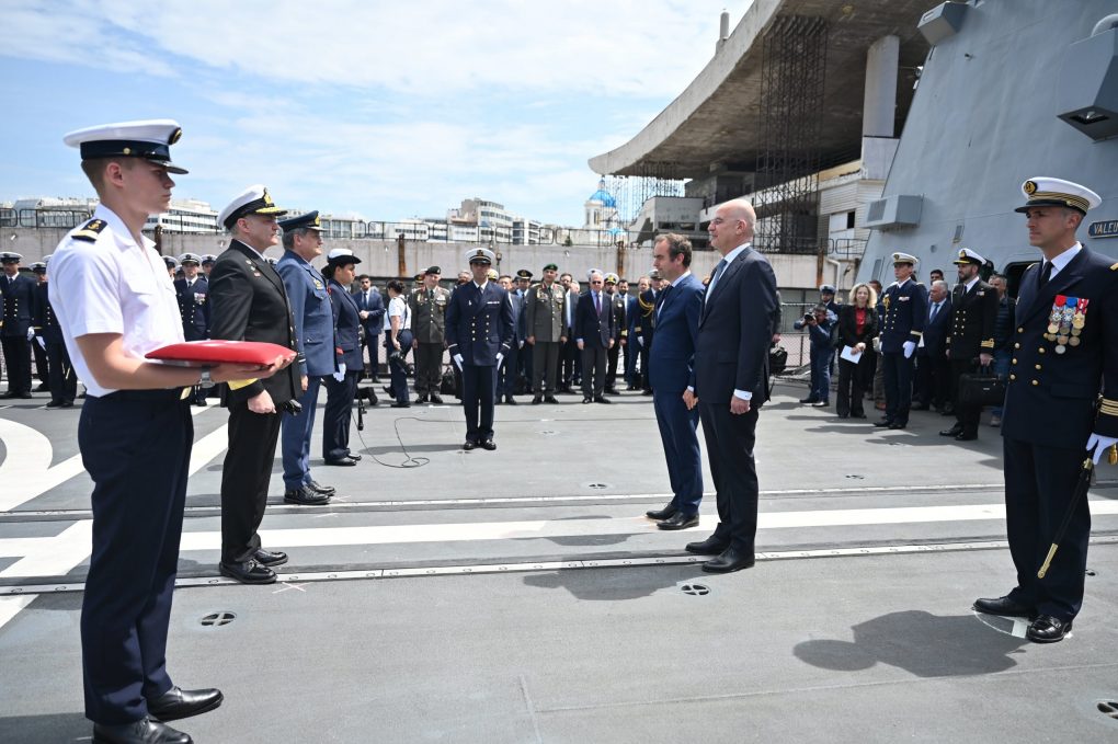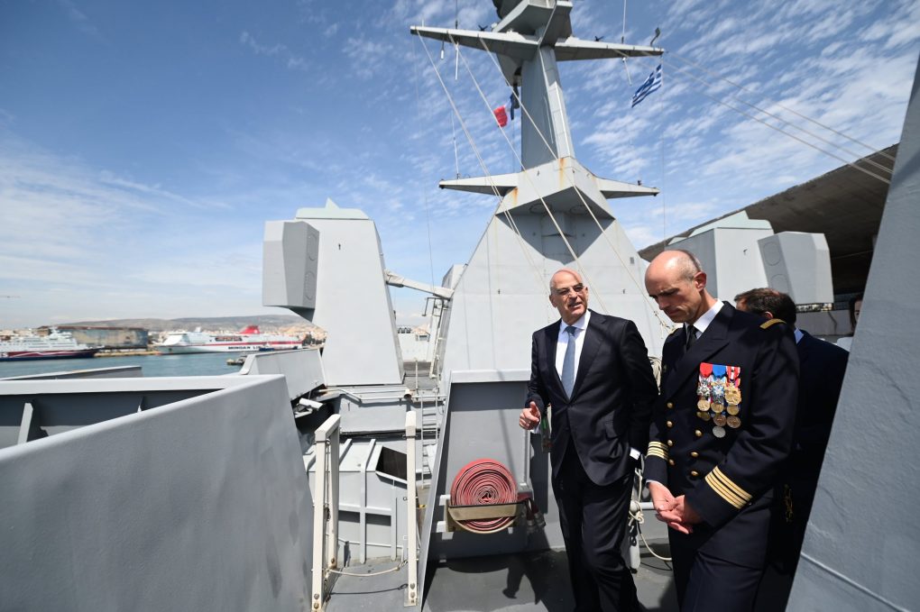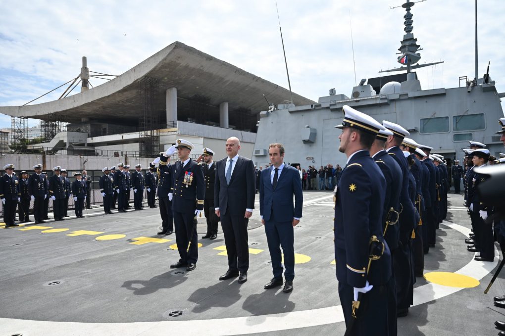 Ευχαριστώ λοιπόν τον Sébastien ,τον Υπουργό Lecornu, για την παρουσία του σήμερα στην Αθήνα και στον Πειραιά, για την παρουσία της Φρεγάτας “ALSACE” εδώ στον Πειραιά και για ό,τι συμβολίζει».