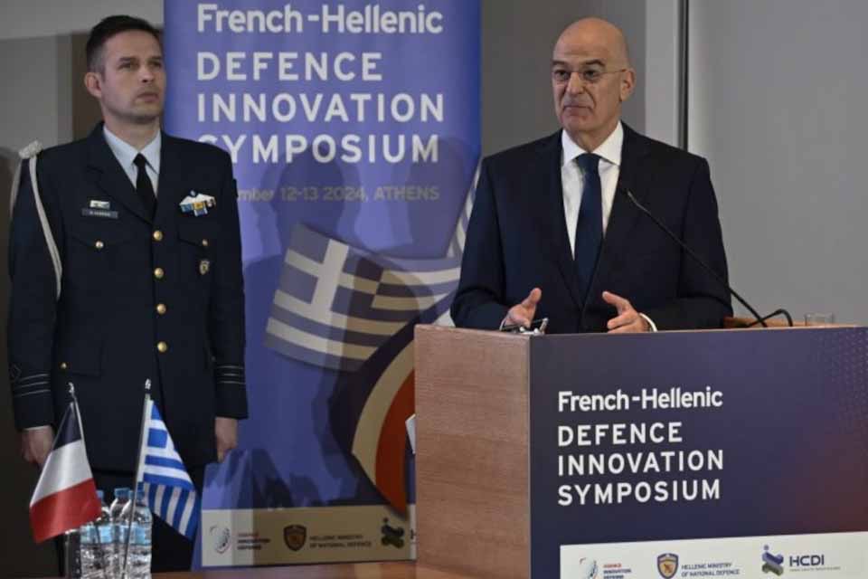 Ο Υπουργός Εθνικής Άμυνας Νίκος Δένδιας κήρυξε σήμερα, Πέμπτη 12 Δεκεμβρίου 2024, την έναρξη των εργασιών του 1ου Ελληνο-Γαλλικού Συμποσίου Αμυντικής Καινοτομίας το οποίο διοργανώνεται στο Ινστιτούτο Ιατροβιολογικών Ερευνών της Ακαδημίας Αθηνών (ΙΙΒΕΑΑ) από το Ελληνικό Κέντρο Αμυντικής Καινοτομίας (ΕΛ.Κ.Α.Κ.), σε συνεργασία με τη Γενική Διεύθυνση Αμυντικών Εξοπλισμών και Επενδύσεων του Υπουργείου Εθνικής Άμυνας και το Κέντρο Αμυντικής Καινοτομίας (AID) της Γαλλίας.