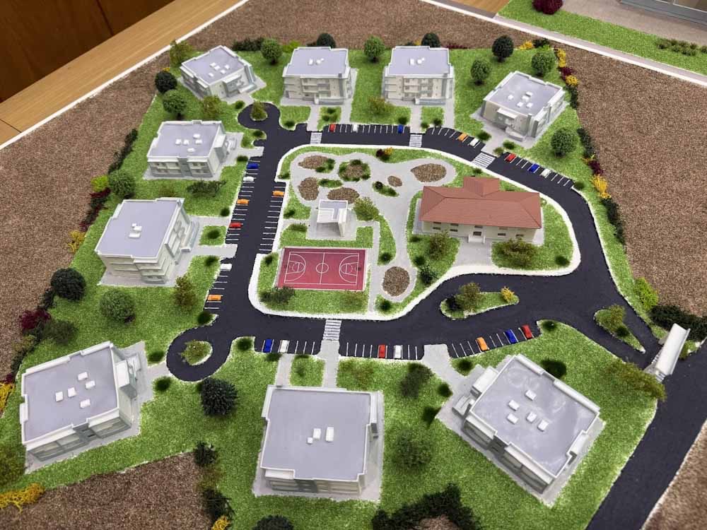 Βλέπετε και στην οθόνη αλλά και σε μακέτες εδώ, υποδείγματα των οικισμών. Ο οικισμός «Ιφιγένεια» στην Ορεστιάδα και ο οικισμός «Διαγόρας» στη Ρόδο σε στρατόπεδα των Ενόπλων Δυνάμεων, για να έχετε μια αίσθηση του πώς θα είναι.