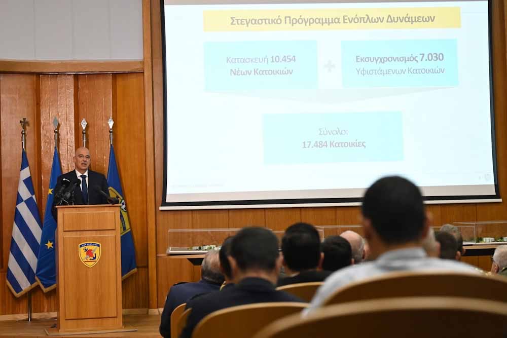 Το νέο οικιστικό πρόγραμμα των Ενόπλων Δυνάμεων περιλαμβάνει την κατασκευή 10454 νέων κατοικιών και τον εκσυχρονισμό των υφιστάμενων 7.030 κατοικιών ώστε συνολικά σε βάθος 15ετίας να υπάρχουν 17.484 σύγχρονες κατοικίες για τα στελέχη. Αυτό ανέφερε σήμερα, Τέταρτη 12 Νοεμβρίου, ο υπουργός Εθνικής Άμυνας, Νίκος Δένδιας, σε παρουσίαση που πραγματοποιήθηκε στο υπουργείο Εθνικής Άμυνας.