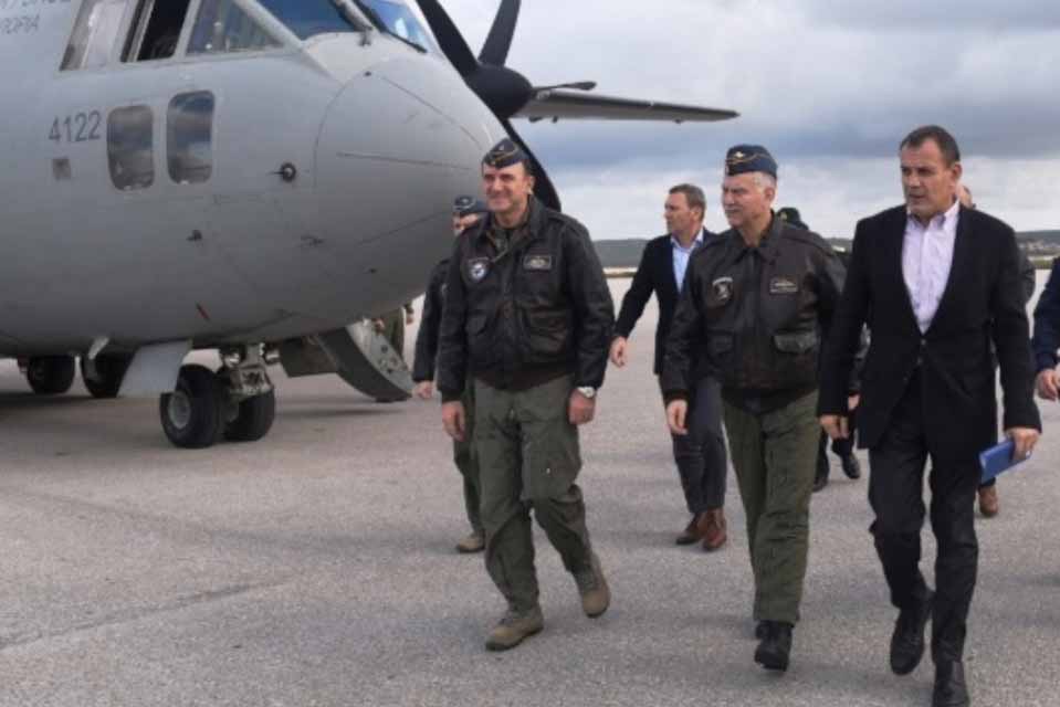 Τον υπουργό Εθνικής ‘Αμυνας συνοδευαν ο αρχηγός ΓΕΕΘΑ πτέραρχος Χρήστος Χριστοδούλου, ο αρχηγός ΓΕΝ αντιναύαρχος Νικόλαος Τσούνης και ο αρχηγός ΓΕΑ αντιπτέραρχος Γεώργιος Μπλιούμης.