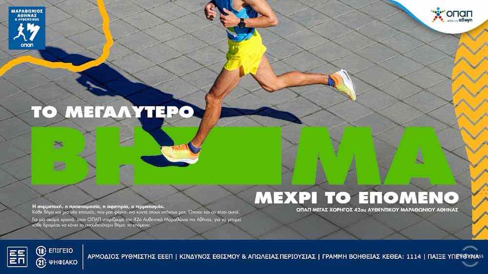 Παράλληλα, ο ΟΠΑΠ, Μέγας Χορηγός του Αυθεντικού Μαραθωνίου της Αθήνας, πραγματοποιεί δράσεις για την εμψύχωση των δρομέων και ετοιμάζει εκπλήξεις για τους επισκέπτες στο περίπτερό του, στο Χωριό των Χορηγών, μετατρέποντας το κέντρο της πρωτεύουσας σε πίστα εμπειριών, αυτό το Σαββατοκύριακο 8 και 9 Νοεμβρίου.