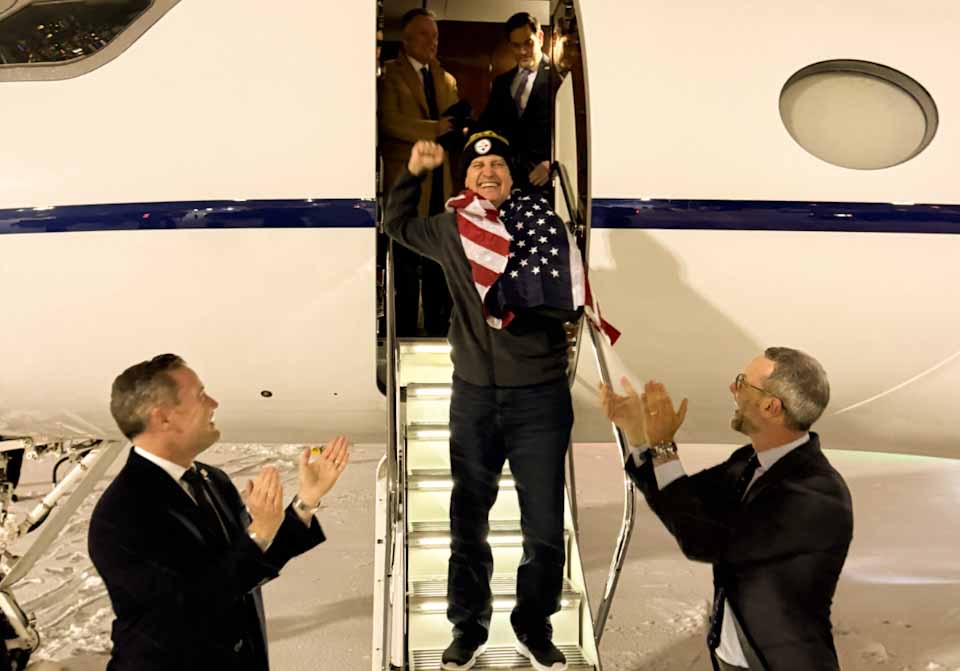 «Υπόσχεση δόθηκε, υπόσχεση τηρήθηκε», δήλωσε ο Λευκός Οίκος μέσω του X αναρτώντας φωτογραφία του πρώην φυλακισμένου καθώς κατέβαινε από το αεροπλάνο.