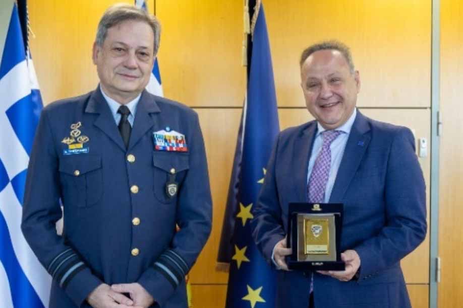 Τιμητική πλακέτα στον αρχηγό του Γενικού Επιτελείου Αεροπορίας, Αντιπτέραρχο (I) Δημοσθένη Γρηγοριάδη, απένειμε ο δήμαρχος Θεσσαλονίκης Στέλιος Αγγελούδης, στο δημαρχείο της πόλης.