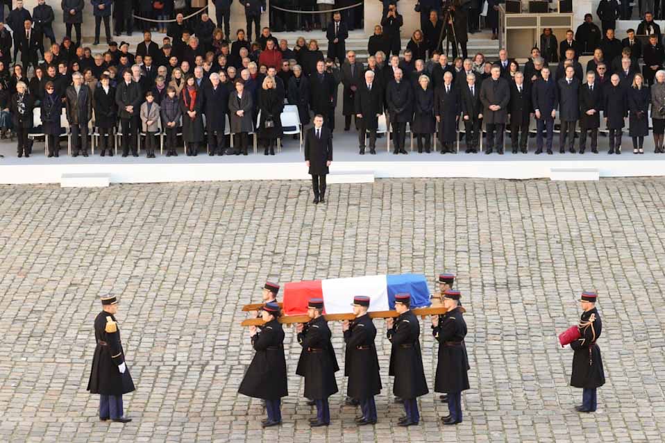 Μετά τον επικήδειο του αρχηγού του κράτους, ακολούθησαν στην αυλή του Μεγάρου των Απομάχων το προσκλητήριο νεκρών, η Μασσαλιώτιδα, ο γαλλικός εθνικός ύμνος, και η Ωδή στη Χαρά, ο ευρωπαϊκός ύμνος.