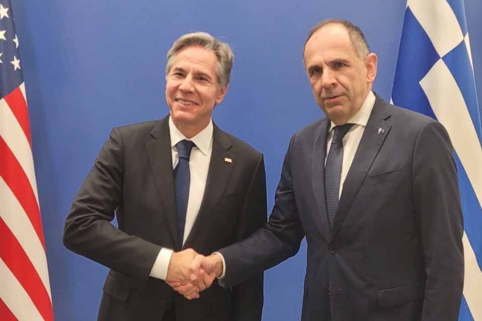 Στο περιθώριο της Συνόδου των Υπουργών Εξωτερικών του ΝΑΤΟ στις Βρυξέλλες, ο υπουργός εξωτερικών, Γιώργος Γεραπετρίτης, συναντήθηκε με τον υπουργό εξωτερικών των ΗΠΑ, Άντονι Μπλίνκεν.