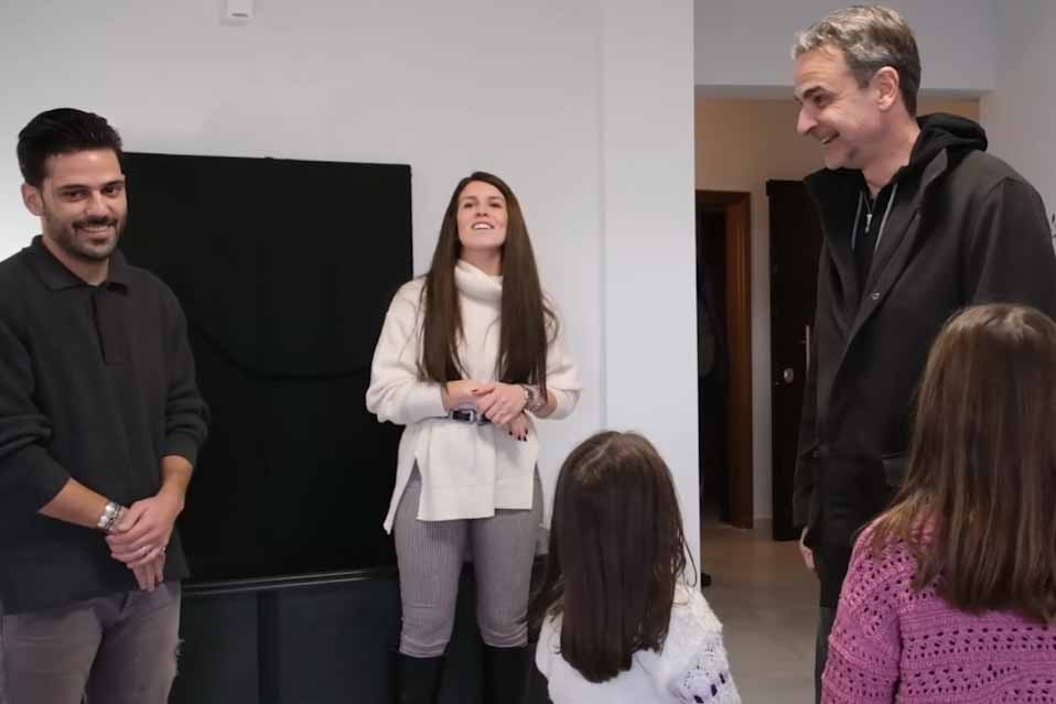 Με ένα νεαρό ζευγάρι με δύο παιδιά, που απέκτησαν το δικό τους σπίτι στο Γαλάτσι ωφελούμενοι από το πρόγραμμα «Σπίτι μου», συναντήθηκε ο Πρωθυπουργός Κυριάκος Μητσοτάκης.