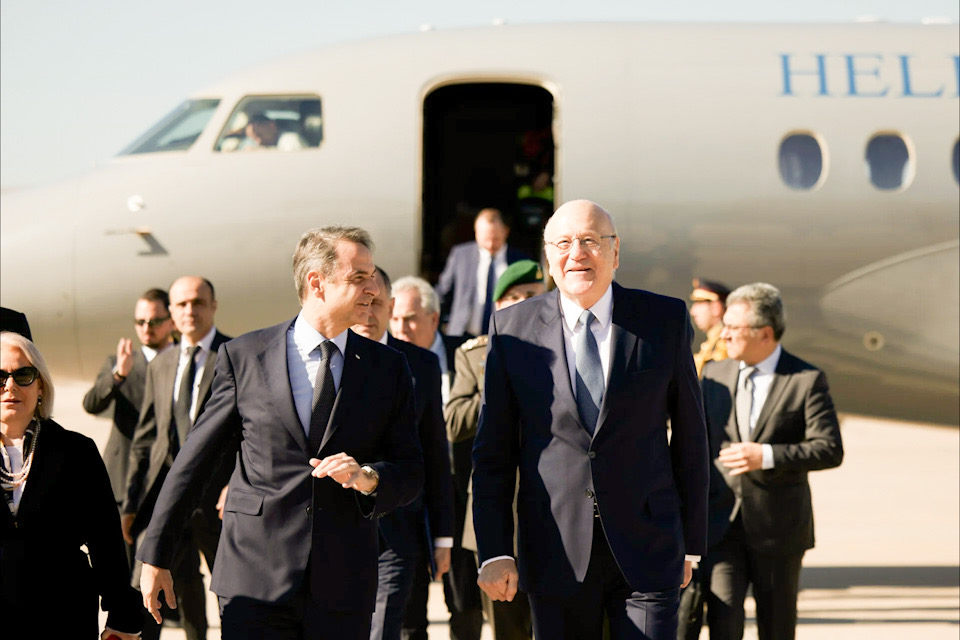 Ο πρωθυπουργός του Λιβάνου, Najib Mikati, υποδέχθηκε σήμερα το πρωί στο αεροδρόμιο της Βηρυτού τον Έλληνα ομόλογό του, Κυριάκο Μητσοτάκη, ο οποίος επισκέπτεται τη χώρα.