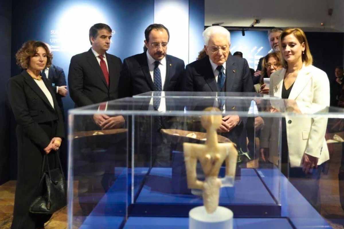 Ο Κύπριος πρόεδρος Νίκος Χριστοδουλίδης και ο Ιταλός ομόλογός του Σέρτζιο Ματαρέλα εγκαινίασαν στη Ρώμη την έκθεση «Κύπρος και Ιταλία. Κοινές πολιτιστικές ταυτότητες στην αυγή της Ιστορίας»