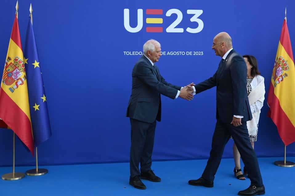Ο Υπουργός Εθνικής Άμυνας, Νίκος Δένδιας, κατά την προσέλευση του σήμερα, Τετάρτη 30 Αυγούστου 2023, στην Άτυπη Σύνοδο των Υπουργών Άμυνας της ΕΕ στο Τολέδο, δήλωσε: