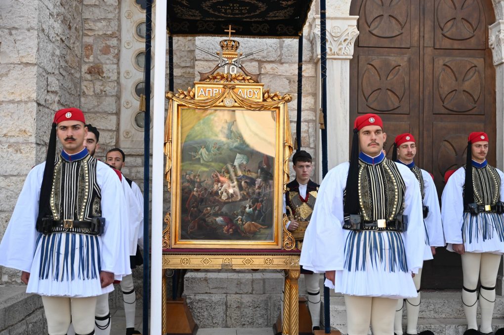 Εν συνεχεία, ο Υπουργός Εθνικής Άμυνας παρακολούθησε τη Μεγάλη Πομπή προς τον Κήπο των Ηρώων σε ανάμνηση της Εξόδου των Ελευθέρων Πολιορκημένων και παρέστη στο τρισάγιο προς τιμήν των Αθάνατων Νεκρών, στην κατάθεση στεφάνου από τον Πρόεδρο της Δημοκρατίας Κωνσταντίνο Τασούλα στον Τύμβο των Ηρώων και στην απονομή βραβείων στις νικήτριες και στους νικητές του 77ου «ΔΡΟΜΟΥ ΘΥΣΙΑΣ».
