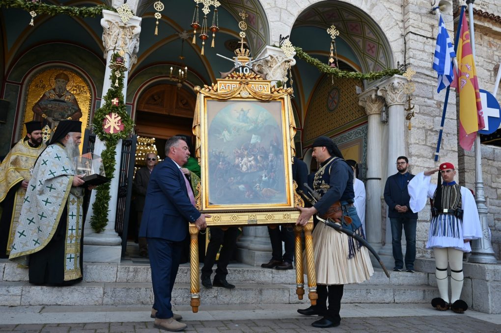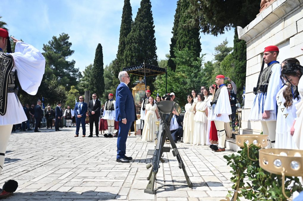 Ο Υπουργός Εθνικής Άμυνας, Νίκος Δένδιας, εκπροσώπησε σήμερα, Κυριακή 13 Απριλίου 2025, τον Πρόεδρο της Κυβέρνησης στις εκδηλώσεις για τον εορτασμό της 199ης Επετείου της ηρωικής Εξόδου των Ελεύθερων Πολιορκημένων, στην Ιερά Πόλη του Μεσολογγίου, παρουσία του Προέδρου της Δημοκρατίας Κωνσταντίνου Τασούλα.