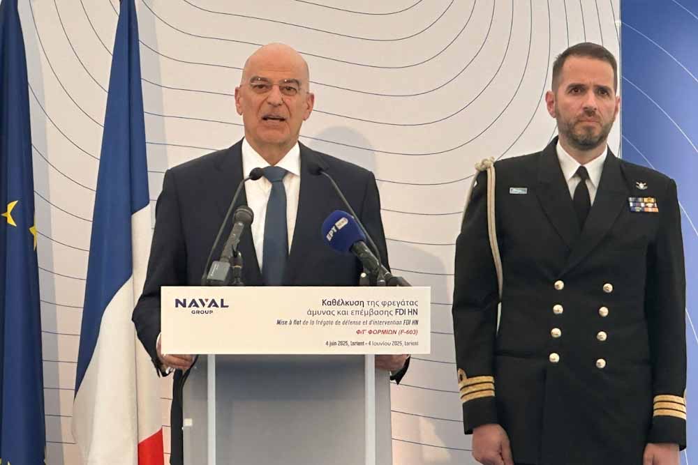Είναι προνόμιο και ιδιαίτερη τιμή να βρίσκομαι σήμερα εδώ στη Λοριάν, για να παραστώ στην τελετή καθέλκυσης της τρίτης φρεγάτας κλάσης FDI για το ελληνικό Πολεμικό Ναυτικό.