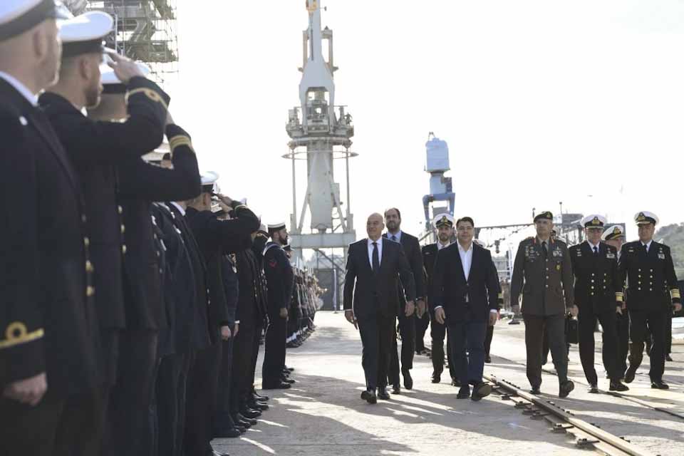 Ο Υπουργός Εθνικής Άμυνας Νίκος Δένδιας παρέστη σήμερα, Δευτέρα 20 Ιανουαρίου 2025, ως εκπρόσωπος του Προέδρου της Κυβέρνησης, στην τελετή ονοματοδοσίας τεσσάρων Παράκτιων Περιπολικών (ΠΠ) σκαφών τύπου «ISLAND» του Πολεμικού Ναυτικού, η οποία πραγματοποιήθηκε στα Ναυπηγεία Σαλαμίνας.