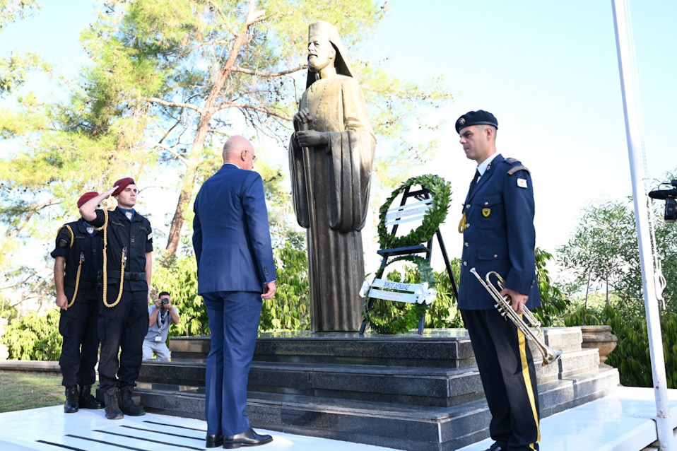Ο Νίκος Δένδιας – Κατέθεσε στεφάνι στον ανδριάντα του Αρχιεπισκόπου Μακαρίου Γ’