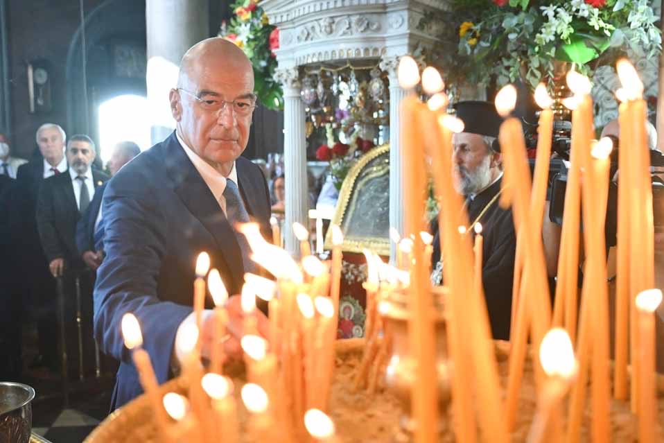 Ο Υπουργός Εθνικής Άμυνας Νίκος Δένδιας εκπροσώπησε τον Πρόεδρο της Κυβέρνησης σήμερα, Πέμπτη 15 Αυγούστου 2024, στον εορτασμό της Κοίμησης της Θεοτόκου και στην επιμνημόσυνη δέηση για την 84η επέτειο από τον τορπιλισμό του Καταδρομικού «ΕΛΛΗ», στην Τήνο.