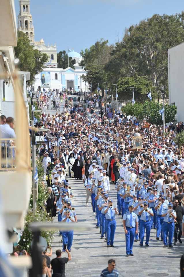 Οι Ένοπλες Δυνάμεις σήμερα την τιμούν και επίσης τιμούν τους νεκρούς από τον άνανδρο τορπιλισμό του Εύδρομου «ΕΛΛΗ» εδώ, στο Λιμάνι της Τήνου, στις 15 Αυγούστου του 1940.