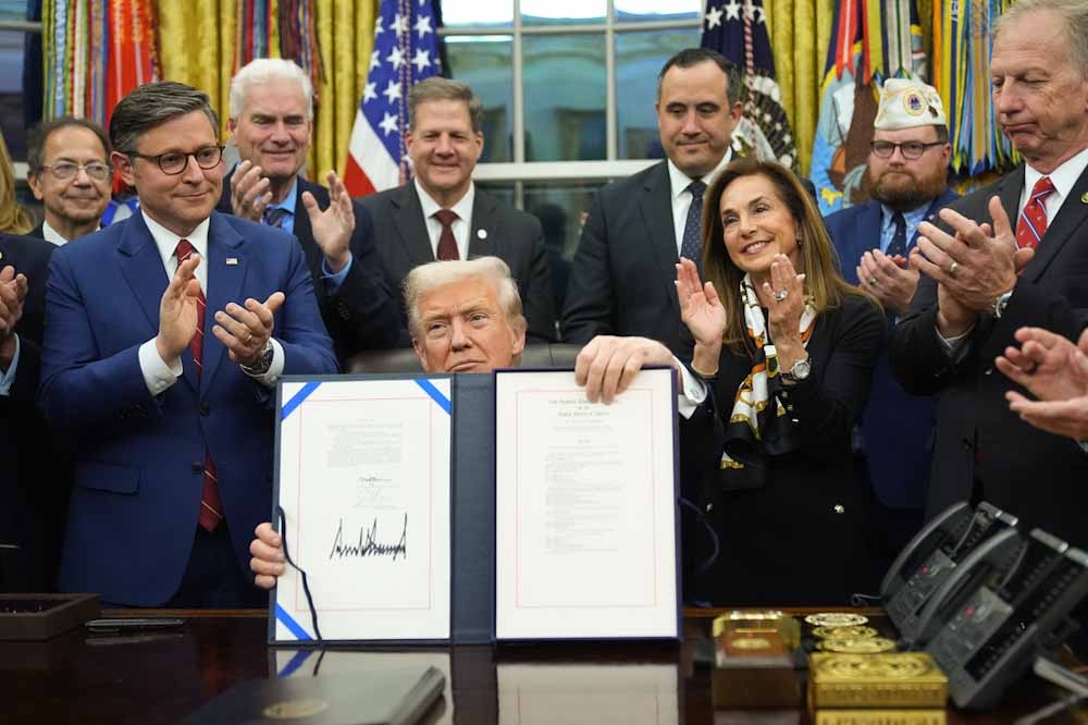 «Σήμερα στέλνουμε το σαφές μήνυμα ότι δεν υποχωρούμε ποτέ σε εκβιασμούς», πέταξε δηκτικά ο μεγιστάνας απευθυνόμενος στους δημοκρατικούς αντιπάλους του, προτού υπογράψει το κείμενο, επευφημούμενος από ρεπουμπλικάνους κοινοβουλευτικούς που τον πλαισίωναν στο Οβάλ Γραφείο.