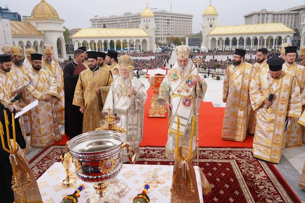 Η Α.Θ. Παναγιότης ο Οικουμενικός Πατριάρχης κ.κ. Βαρθολομαίος σήμερα, Κυριακή, 26 Οκτωβρίου 2025, τέλεσε, μαζί με την Α. Μακαριότητα τον Πατριάρχη Ρουμανίας κ. Δανιήλ, τον Καθαγιασμό των Ιερών ψηφιδωτών Εικόνων του νεοανεγερθέντος Εθνικού Καθεδρικού Ναού στο Βουκουρέστι, στο πλαίσιο των επετειακών εκδηλώσεων συμπλήρωσης 140 ετών από την απονομή της Αυτοκεφαλίας στην Εκκλησία της Ρουμανίας και 100 ετών από την ανύψωσή της σε Πατριαρχείο από τον Οικουμενικό Θρόνο. Υπενθυμίζεται ότι, το 2018, ο Παναγιώτατος και ο Μακ. Πατριάρχης Ρουμανίας είχαν τελέσει τα εγκαίνια του περικαλλούς Εθνικού Καθεδρικού Ναού.