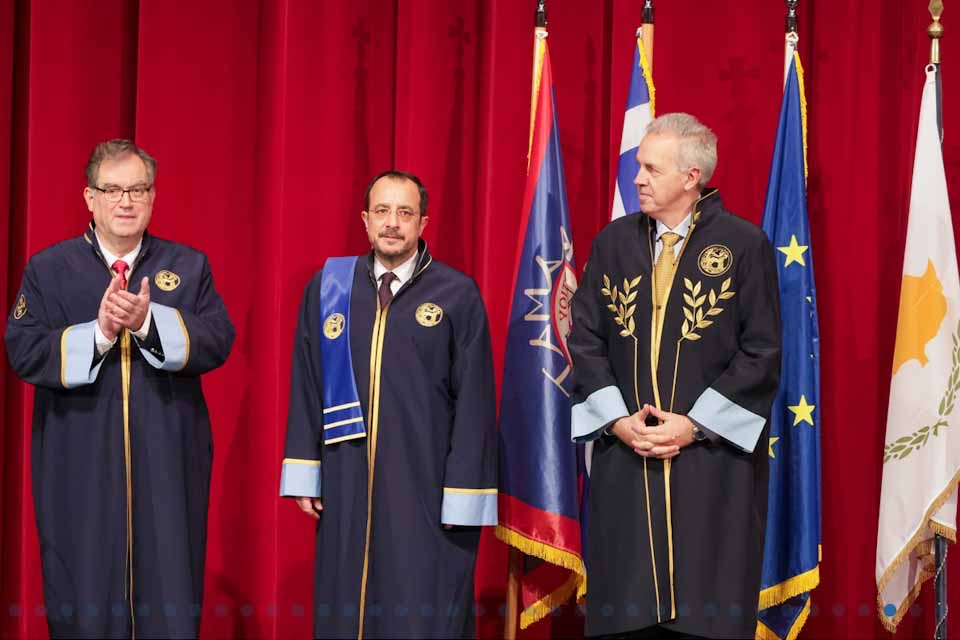 Σε Επίτιμο Διδάκτορα του Τμήματος Ιστορίας, Αρχαιολογίας και Διαχείρισης Πολιτισμικών Αγαθών του Πανεπιστημίου Πελοποννήσου αναγορεύθηκε χθες ο Πρόεδρος της Κυπριακής Δημοκρατίας κ. Νίκος Χριστοδουλίδης.