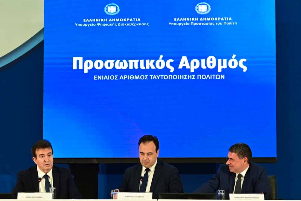 Το νέο μεγάλο βήμα για την ψηφιακή μετάβαση της χώρας με την καθιέρωση του Προσωπικού Αριθμού, του ενιαίου αριθμού ταυτοποίησης των πολιτών, παρουσίασαν σήμερα στο υπουργείο Ψηφιακής Διακυβέρνησης, οι Δημήτρης Παπαστεργίου, υπουργός Ψηφιακής Διακυβέρνησης, Μιχάλης Χρυσοχοΐδης, υπουργός Προστασίας του Πολίτη και ο Δημοσθένης Αναγνωστόπουλος, γενικός γραμματέας Πληροφοριακών Συστημάτων και Ψηφιακής Διακυβέρνησης – υπουργείο Ψηφιακής Διακυβέρνησης, παρουσία μεταξύ άλλων και του διοικητή της ΑΑΔΕ, Γιώργου Πιτσιλή. Κοινή πεποίθηση όλων είναι πως η καθιέρωση του Προσωπικού Αριθμού σηματοδοτεί μια νέα εποχή στις συναλλαγές των πολιτών με το δημόσιο, υπόσχεται την απλοποίηση των διαδικασιών, τη μείωση της γραφειοκρατίας, την ενίσχυση της ασφάλειας και τη βελτίωση της καθημερινότητας.