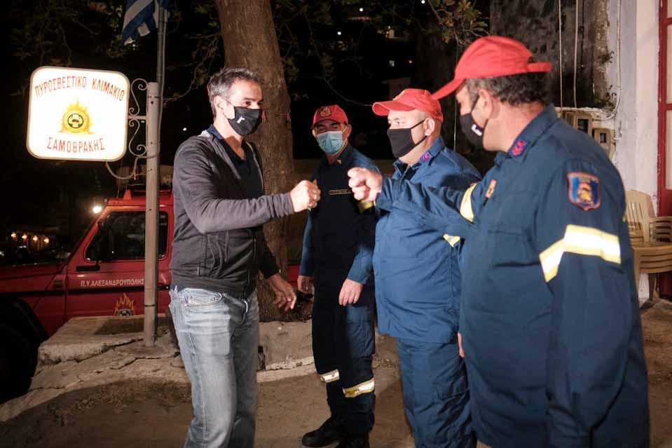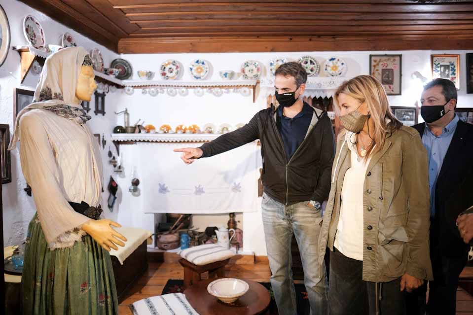 Ο πρωθυπουργός συνοδευόταν από τη σύζυγο του Μαρέβα Γκραμπόφσκι – Μητσοτάκη, την υπουργό Πολιτισμού και Αθλητισμού Λίνα Μενδώνη και τον Υφυπουργό Εσωτερικών Θεόδωρο Λιβάνιο, σταμάτησε και στον Πυροσβεστικό Σταθμό για να συνομιλήσει με τα στελέχη του Πυροσβεστικού Σώματος, ενώ επισκέφθηκε και το Λαογραφικό Μουσείο του νησιού, όπου παρουσιάζεται ένα παραδοσιακό σπιτι της Σαμοθράκης και με τα εκθέματά του κρατείται ζωντανή η λαογραφική ιστορία του νησιού. Τον Πρωθυπουργό συνόδευαν, επίσης, ο Περιφερειάρχης Ανατολικής Μακεδονίας και Θράκης Χρήστος Μέτιος και ο Δήμαρχος, Νικόλαος Γαλατούμος.