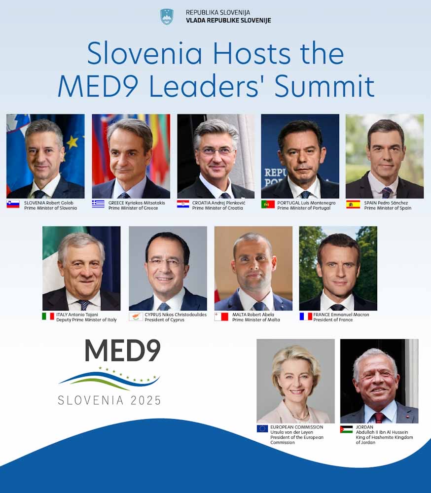 Αύριο, Δευτέρα, ο πρωθυπουργός Κυριάκος Μητσοτάκης θα συμμετάσχει στη σύνοδο κορυφής MED9 στο Πορτορόζ της Σλοβενίας, όπου στο επίκεντρο θα βρεθούν οι τελευταίες εξελίξεις στη Μέση Ανατολή και η ενίσχυση της ευρωπαϊκής ανταγωνιστικότητας. Στη συνάντηση θα παραστεί επίσης ο βασιλιάς της Ιορδανίας Abdullah II, γεγονός που προσδίδει ιδιαίτερη διπλωματική βαρύτητα στις συζητήσεις για την ειρήνη και τη σταθερότητα στην περιοχή.