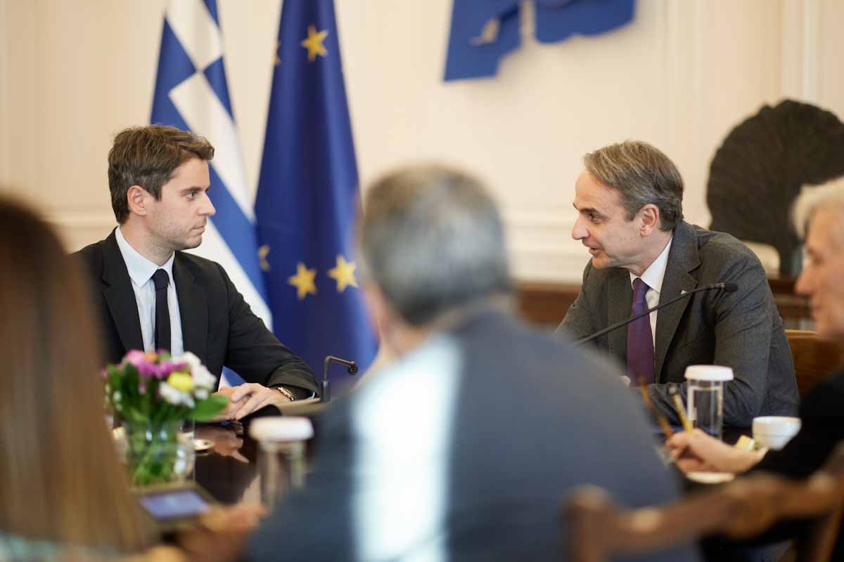 Ο Πρωθυπουργός Κυριάκος Μητσοτάκης συναντήθηκε με τον πρώην Πρωθυπουργό της Γαλλίας και Γενικό Γραμματέα του κόμματος «Renaissance» Gabriel Attal. Κατά τη διάρκεια της συνάντησης ανταλλάχθηκαν απόψεις για τις ελληνογαλλικές σχέσεις, καθώς και για ζητήματα ευρωπαϊκού και περιφερειακού ενδιαφέροντος με έμφαση τις τελευταίες εξελίξεις στο Ιράν και στη Μέση Ανατολή.