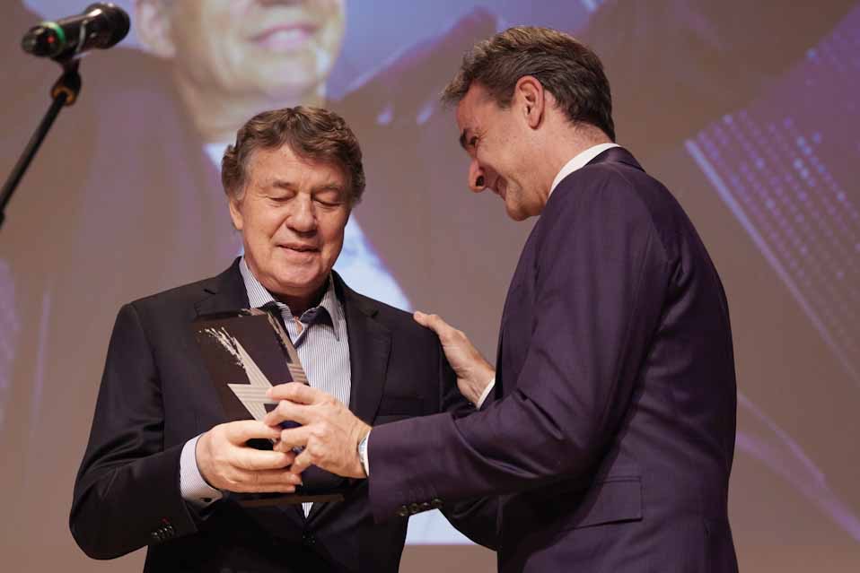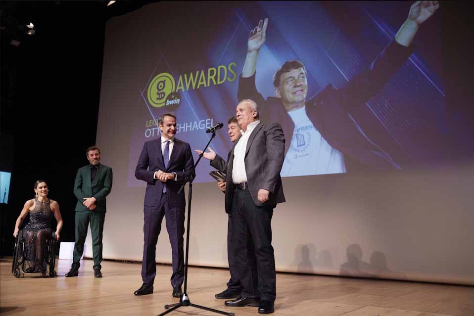 Ο Πρωθυπουργός Κυριάκος Μητσοτάκης, συνοδευόμενος από τη σύζυγό του Μαρέβα Γκραμπόφσκι – Μητσοτάκη, παρέστη στην τελετή απονομής των «Gazzetta Awards» στο Μέγαρο Μουσικής και απένειμε βραβείο στον Otto Rehhagel, τον προπονητή που οδήγησε την εθνική ομάδα ποδοσφαίρου στην κατάκτηση του Euro 2004.