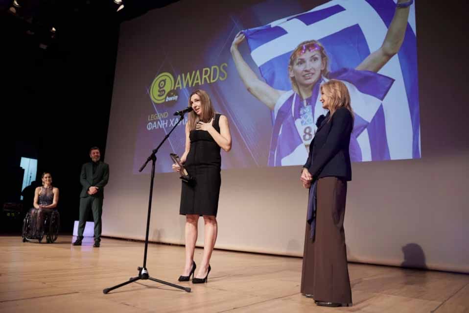 Η Μαρέβα Γκραμπόφσκι – Μητσοτάκη απένειμε βραβείο στη Φανή Χαλκιά για τη συνολική προσφορά της στον αθλητισμό.