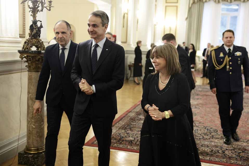 Το διπλωματικό σώμα υποδέχθηκε η Κατερίνα Σακελλαροπούλου στο Προεδρικό Μέγαρο, παρουσία του πρωθυπουργού Κυριάκου Μητσοτάκη και του υπουργού Εξωτερικών Γιώργου Γεραπετρίτης.
