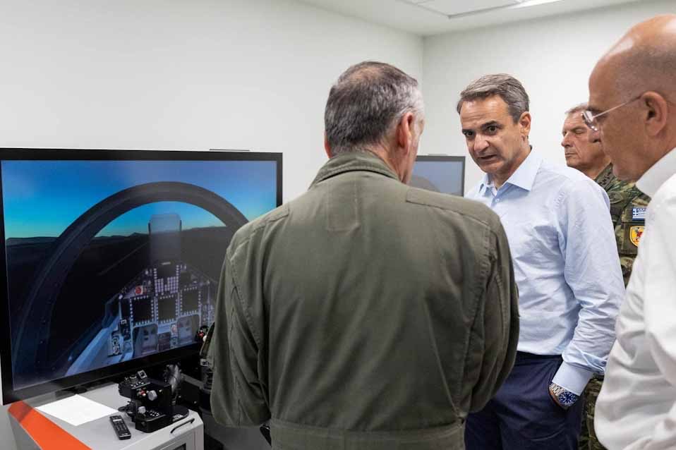 Στη συνέχεια ο Κυριάκος Μητσοτάκης ξεναγήθηκε στις εγκαταστάσεις της μονάδας, όπου είχε την ευκαιρία να ενημερωθεί για τις δυνατότητες των εξομοιωτών υψηλής ευκρίνειας και μεγάλου όγκου δεδομένων, αλλά και για τα συστήματα αναλυτικής παρακολούθησης πτήσεων. Παράλληλα, συνομίλησε με τους Ισραηλινούς ειδικούς που υποστηρίζουν τους Έλληνες εκπαιδευτές για την αναβάθμιση των εκπαιδευτικών δυνατοτήτων της μονάδας.