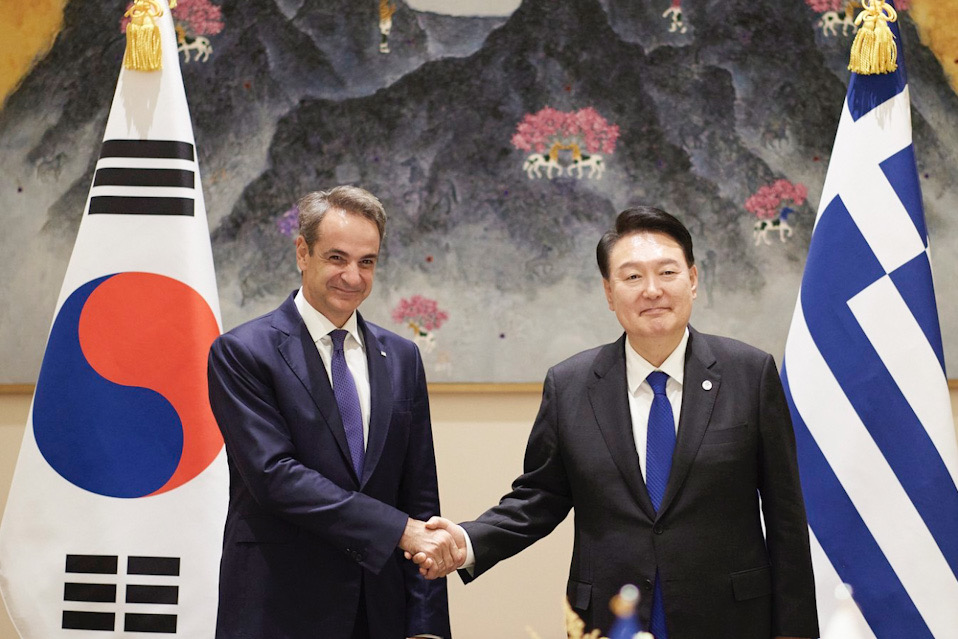 Στη συνέχεια, ο Κυριάκος Μητσοτάκης συναντήθηκε με τον Πρόεδρο της Δημοκρατίας της Κορέας, Yoon Suk Yeol.