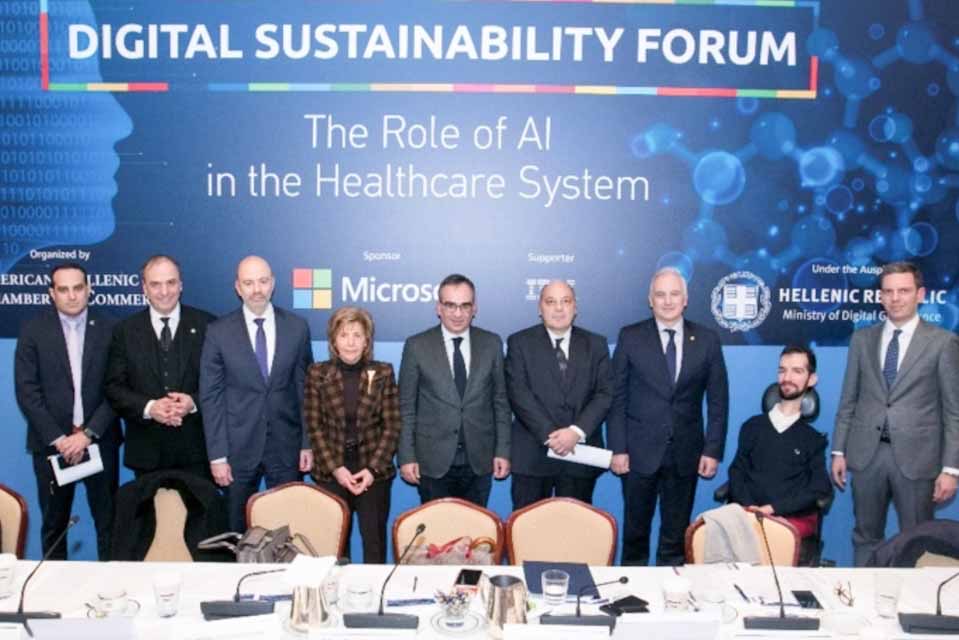 Πρόσφατα πραγματοποιήθηκε η δεύτερη κατά σειρά κλειστή συνάντηση – συζήτηση με θέμα “Digital Sustainability Forum:The Role of AI in the Healthcare System” με τη συμμετοχή του υφυπουργού Ψηφιακής Διακυβέρνησης Γρηγόρη Ζαριφόπουλου, του υφυπουργού Ψηφιακής Υγείας, Βασίλη Κοντοζαμάνη και εκπροσώπων των αρμοδίων υπουργείων, της ακαδημαϊκής κοινότητας, ευρωβουλευτές και εκπροσώπους δημόσιων οργανισμών και εταιριών του τομέα της υγείας και της πληροφορικής.