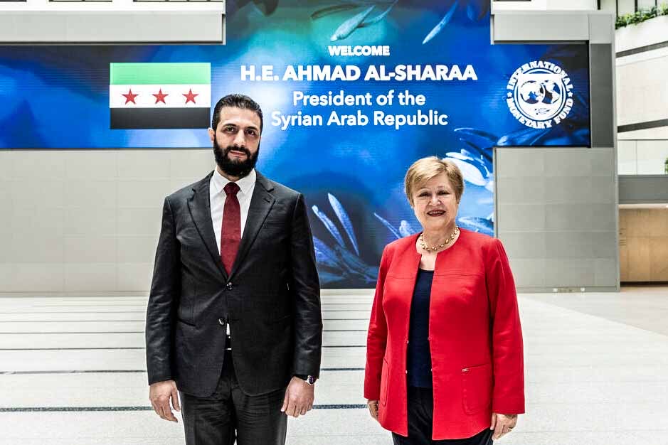 Λίγο πριν από τη συνάντηση-ορόσημο με τον Αμερικανό Πρόεδρο Ντόναλντ Τραμπ τη Δευτέρα στον Λευκό Οίκο, ο Πρόεδρος της Συρίας, Άχμεντ αλ-Σάραα, πραγματοποίησε χθες επίσκεψη στην Ουάσινγκτον, όπου έγινε δεκτός από αξιωματούχους του Διεθνούς Νομισματικού Ταμείου (ΔΝΤ). Οι συνομιλίες επικεντρώθηκαν στις προοπτικές οικονομικής ανασυγκρότησης της Συρίας και στη συνεργασία με διεθνείς θεσμούς για τη σταθεροποίηση της οικονομίας της χώρας μετά από χρόνια συγκρούσεων.
