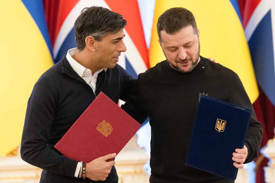 Ουκρανός πρόεδρος Βολοντίμιρ Ζελένσκι και ο Βρετανός πρωθυπουργός Ρίσι Σούνακ υπέγραψαν σήμερα μια συμφωνία για την ασφάλεια μεταξύ των δύο χωρών στο Κίεβο.